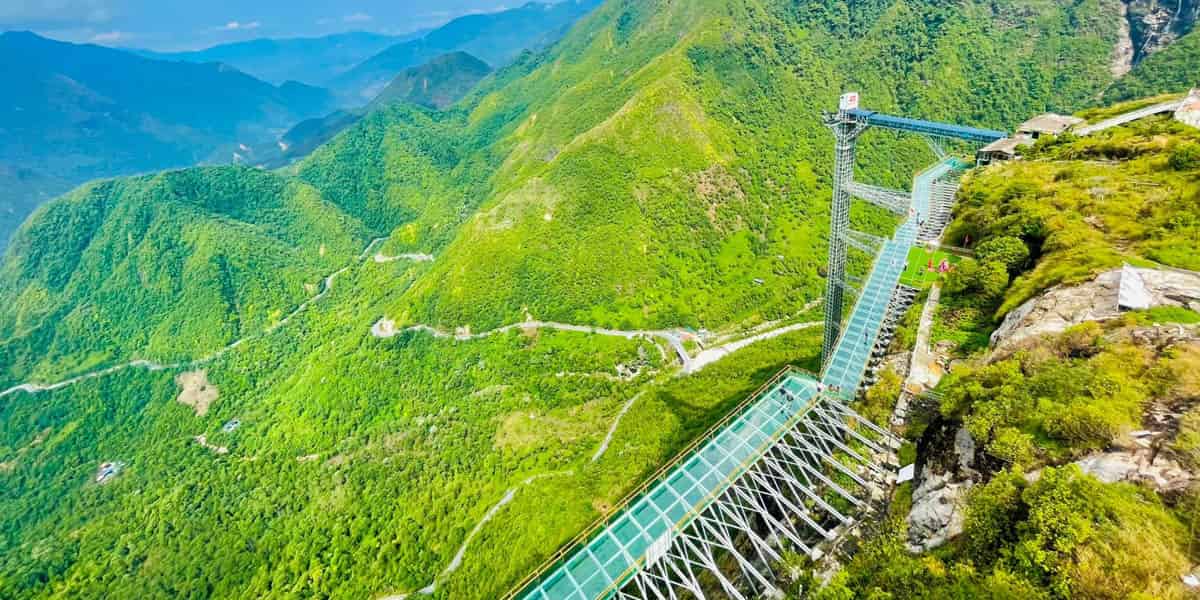 Khu du lịch Cầu kính Rồng Mây với thang máy trong suốt với chiều cao hơn 300m sẽ đưa quý khách xuyên qua các tầng mây, thỏa sức hòa mình vào thiên nhiên, có thể ngắm nhìn đỉnh núi Phan Xi Păng hùng vỹ (Chưa bao gồm giá vé trong chương trình).